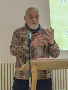 Hervorgegangen war der Vortragsabend mit knapp 50 aufmerksamen Zuhörern aus einem offenen Gesprächskreis mit dem Motto „Mein Glaubensbekenntnis“, den die KEB im Jahr 2022 zum Katholikentag in Stuttgart begonnen hatte. Zwei Jahre lang traf sich der Kreis etwa monatlich und drang dabei zu existenziellen Fragen vor. Es wuchs so viel Vertrauen untereinander, dass aus dem offenen Kreis schließlich eine geschlossene Runde wurde. Mit dem Vortrag öffnete sie sich wieder.