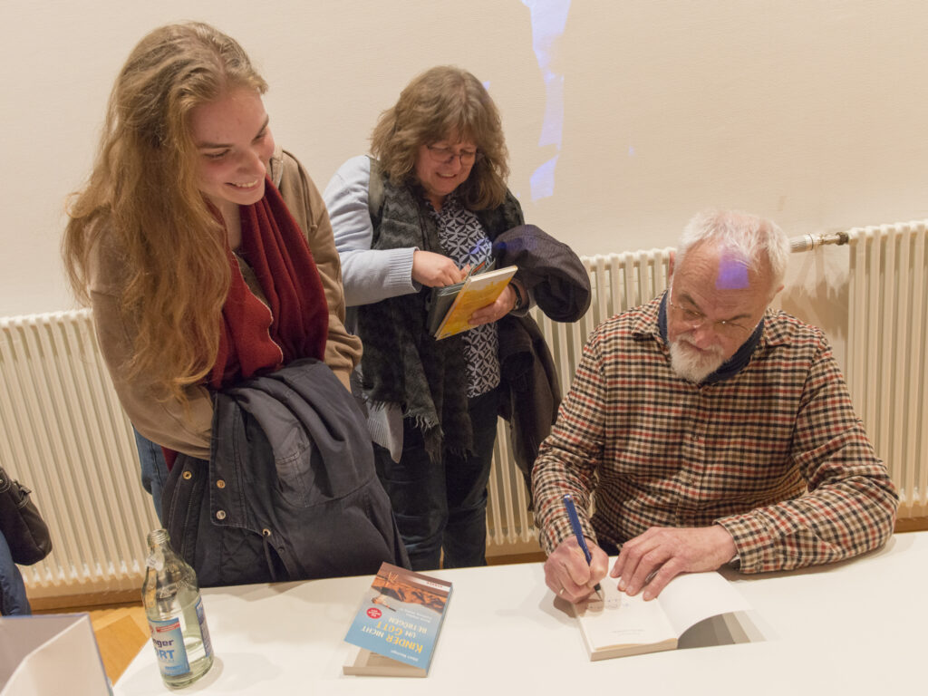 In diesem zitierte Biesinger einen Professorenkollegen: Mit dem Tod eines Menschen werde quasi die Festplatte gelöscht. Und widersprach entschieden: „Ich bin mehr als mein Körper. Das Erlebte wird bleiben, wenn wir uns von unserem Körper lösen.“ Biesinger weiß, wie sehr manche Menschen im Rückblick auf ihr eigenes Leben grübeln: ach, hätte ich nur, ach wäre ich doch.“ Das führe nicht weiter, sagte er. Seine Empfehlung: „Die Dankbarkeit muss man hochhalten, nicht die Grübelei.“ So könne jeder sein eigenes Buch über Gelungenes schreiben, wie er es getan habe – ob nun auf Papier oder nur als Kopfkino.