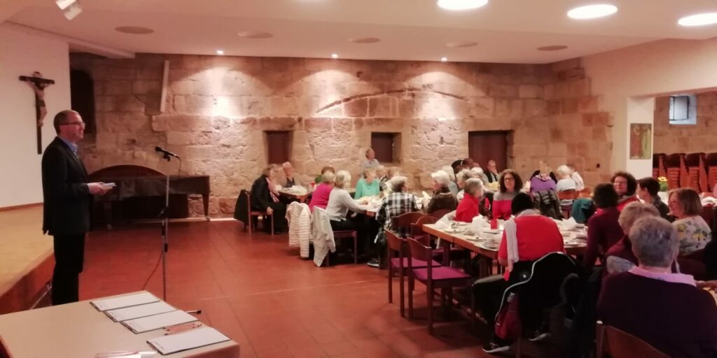 „… ein schöner Vormittag, in netter Gesellschaft mit tollem Programm und leckerem Frühstücksbuffet.“ So, oder so ähnlich hörte man die eine oder andere Frau sagen. Beinahe 70 Frauen kamen zum ersten Frauenfrühstückin den Salemer Pfleghof. Die Idee entstand aus dem Pastoralen Prozess „Gemeinsam unterwegs mit Leidenschaft für Gott“ in den vergangenen Jahren: Ein leckeres Frühstück für Frauen, verbunden mit einem kulturellen Angebot – und natürlich guten Begegnungen und Gesprächen. Nach einem liebevoll zusammengestellten, reichhaltigen und leckeren Frühstück wurden wir, für eine gute Stunde, von den Künstlerinnen Frau Dr. Falardeau und Frau Bartl in eine literarische und musikalische Welt entführt. Die vorgetragenen humorvollen und tiefgründigen Gedichte, sowie dazu die fein abgestimmte Querflötenmusik, lösten große Begeisterung und stürmischen Beifall aus. Ein wunderbarer Vormittag ging viel zu schnell vorüber.