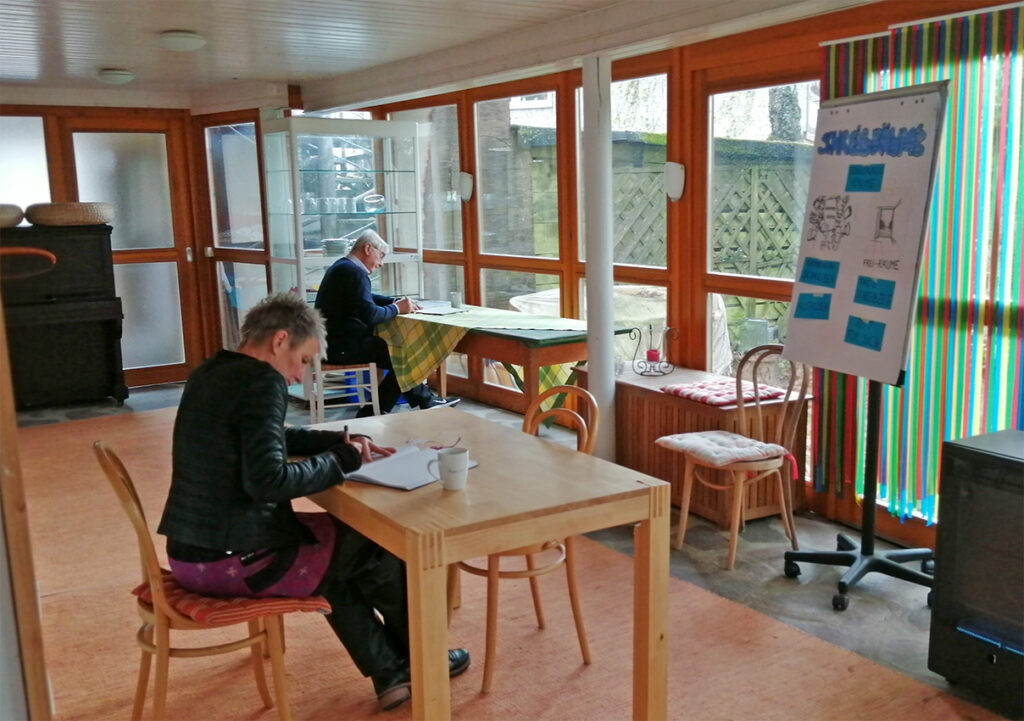 Wer mochte, teilte seine Gedichte mit der Gruppe, und es kamen wahre Lebensschätze zum Vorschein. Wie in allen Schreibkursen legte Miriam Hägner Wert auf einen offenen und wertschätzenden Umgang miteinander, was der Gruppe ein Selbstverständnis war. Durch die zahlreichen Anregungen und Möglichkeiten, die Gedanken mit Methode zu sortieren und zu verschriftlichen, gelang es Miriam Hägner wieder einmal, den unterschiedlichen Bedürfnissen Aller gerecht zu werden.
