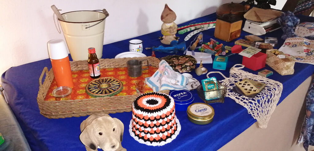 Am Nachmittag wurde ,,der Erinnerungskoffer“ geöffnet, und es gab viele „Ahs“ und „Ohs“, denn der ganze Raum war dekoriert mit Gegenstanden aus vergangenen Zeiten, die alle zum Ziel hatten, die Schreibenden mit allen Sinnen zu inspirieren. Sie konnten ihren Erinnerungen im freien Schreiben Ausdruck verleihen und ihre Eindrücke am Abend in ebenso freien Gedichtformen komprimieren. Auch das Handwerkzeug dazu lieferte Miriam Hägner.